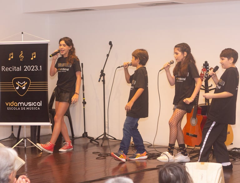 Aulas que desenvolvem técnica vocal e expressão artística.